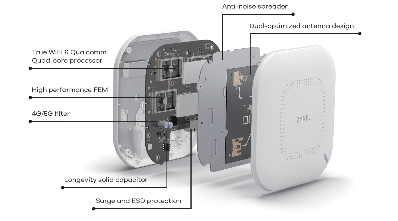 - Διαχείριση Nebula Cloud: Χρησιμοποιήστε την δωρεάν πλατφόρμα Nebula για να παρακολουθείτε και να διαχειρίζεστε κεντρικά ένα ή περισσότερα σημεία πρόσβασης από οπουδήποτε στον κόσμο – εντελώς χωρίς τέλη άδειας χρήσης.